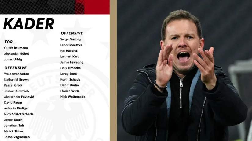 Uz njega, u nacionalni tim posle određenog vremena vraćaju se Kaj Haverc (prvi put na spisku od bovembra 2024. godine), zatim Antonio Ridiger (bez obira što je nemačka javnost zahtevala od selektora da ga preskoči), pa Anton Štah, Paskal Gros i Džoša Vagnoman.