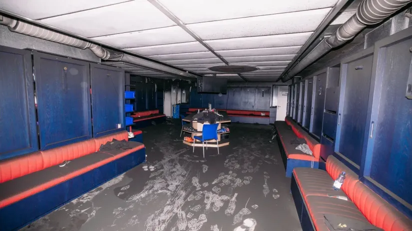 Šta je sve izgorelo? Dosta toga. Svlačionica za domaći tim, kancelarija za trenere, za tim menadžere, za fizioterapije, pa dalje magacin za opremu, velnes deo, tuš kabine, te zona za oporavak. Tu je sve potpuno unšteno, iako je vatra uglavnom bila lokalizovana tu oko saune.
