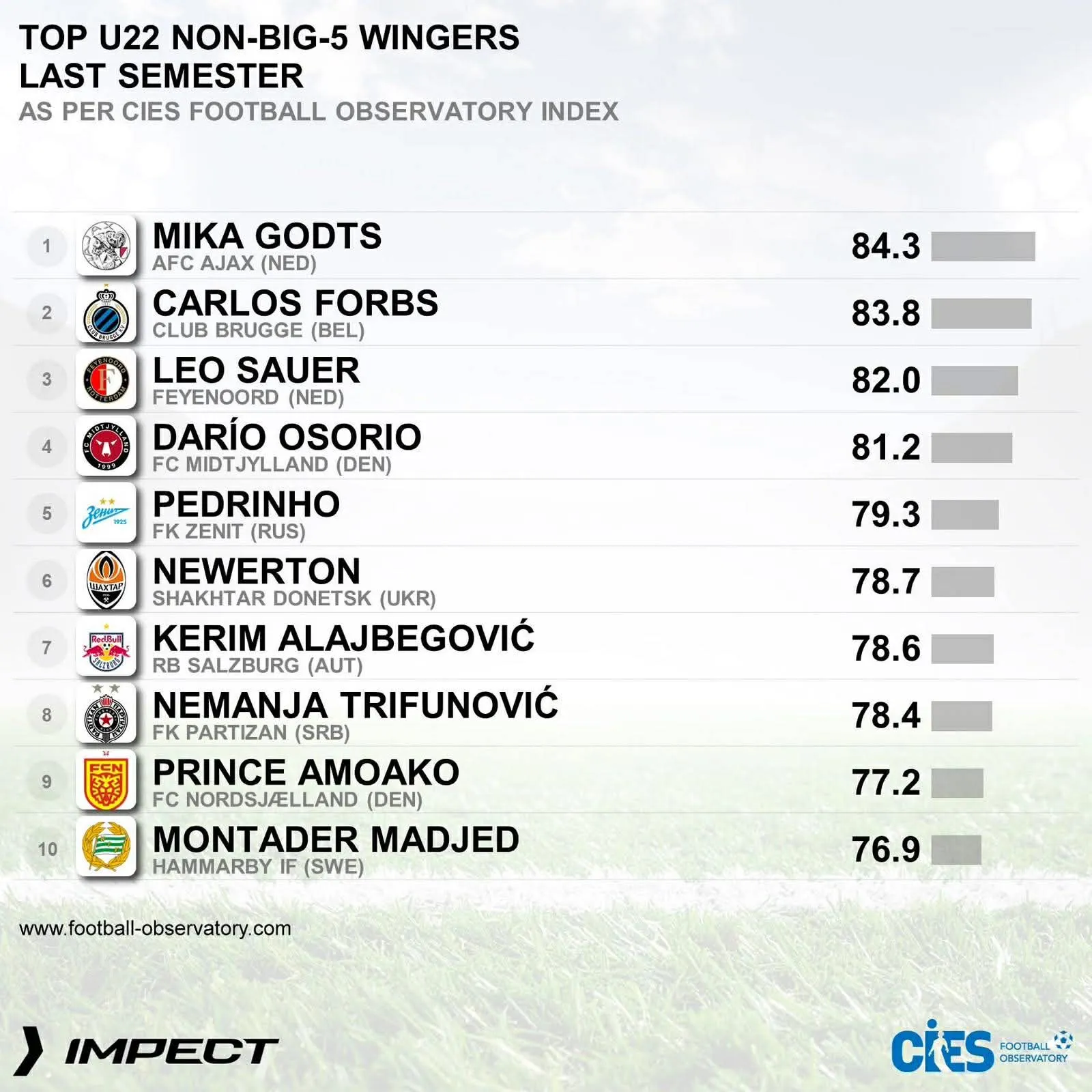 O tome kako je igrao Nemanja Trifunović u završna tri meseca 2025, svedoči podatak Fudbalske opservatorije CIES prema čijim podacima je prvotimac Partizana u TOP deset najboljih krila Evrope, ako se gleda učinak van Liga petice.