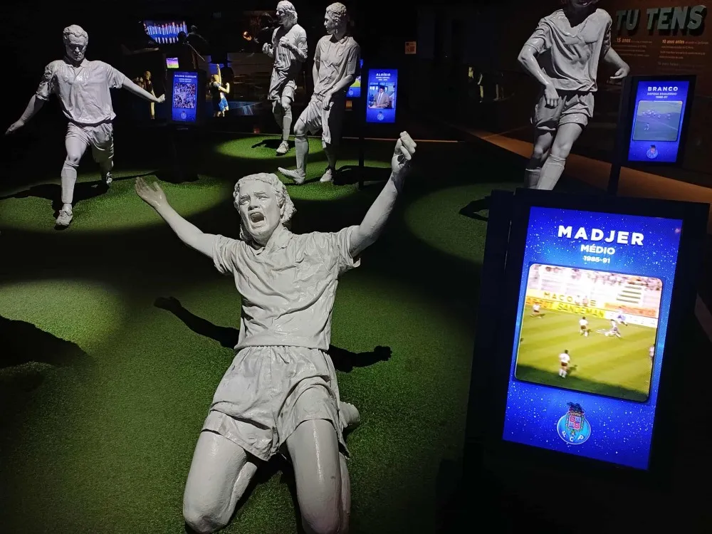 Sigurno ste pratili anketu na našem portalu o izboru najboljih postava u istoriji Crvene zvezde i Partizana. Očigledno je da u Portu ne brenuju mnogo sujetu bivših igrača, izabrali su već postavu koja je ostavila najjači utisak u istoriji kluba. Napravlejne su voštane figure 11 veličanstvenih, i to u njihovim karakterističnim izdanjima. Tako možete da vidite Brazilca Hulka bez dresa kako pokazuje grudne mišiće, što je bila njegova karakteristična postava. Rikarda Karavalja kako uklizava na loptu, Deka i Futrea kako predaju pas, dok je pomenuti Mađer oslikan iz bečkog finala kako proslavlja pogodak.