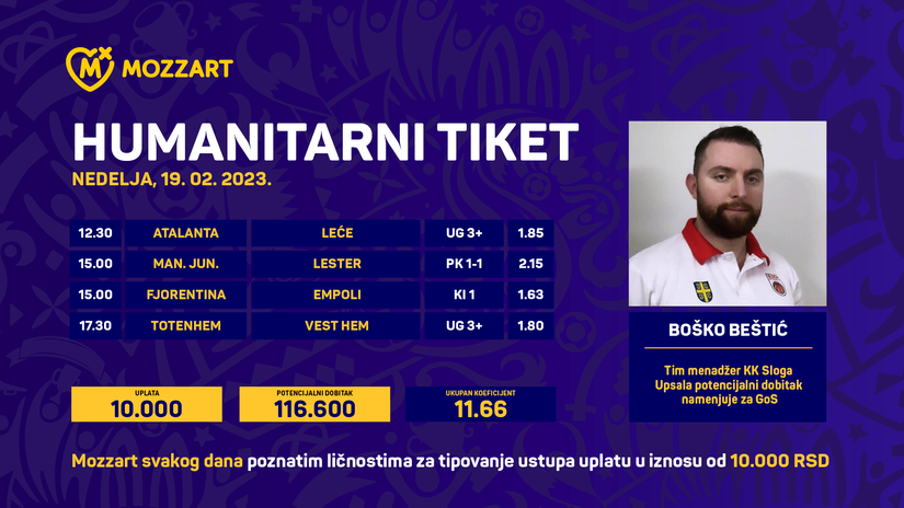 Humanitarni tiket u podne: Boško Beštić tipuje za GOS
