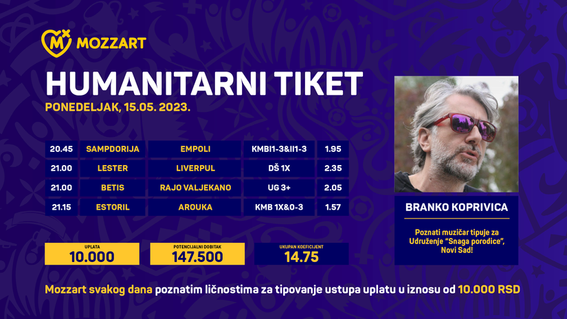 Humanitarni tiket u podne: Branko Koprivica tipuje za Udruženje “Snaga porodice”, Novi Sad