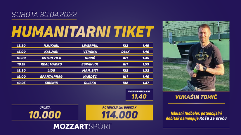 Humanitarni tiket u podne: Vukašin Tomić tipuje za Koš za sreću