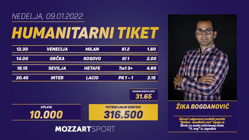 Glavni i odgovorni urednik portala “Balkan –handball.com” očekuje plemeniti dobitak od 316.500 dinara!