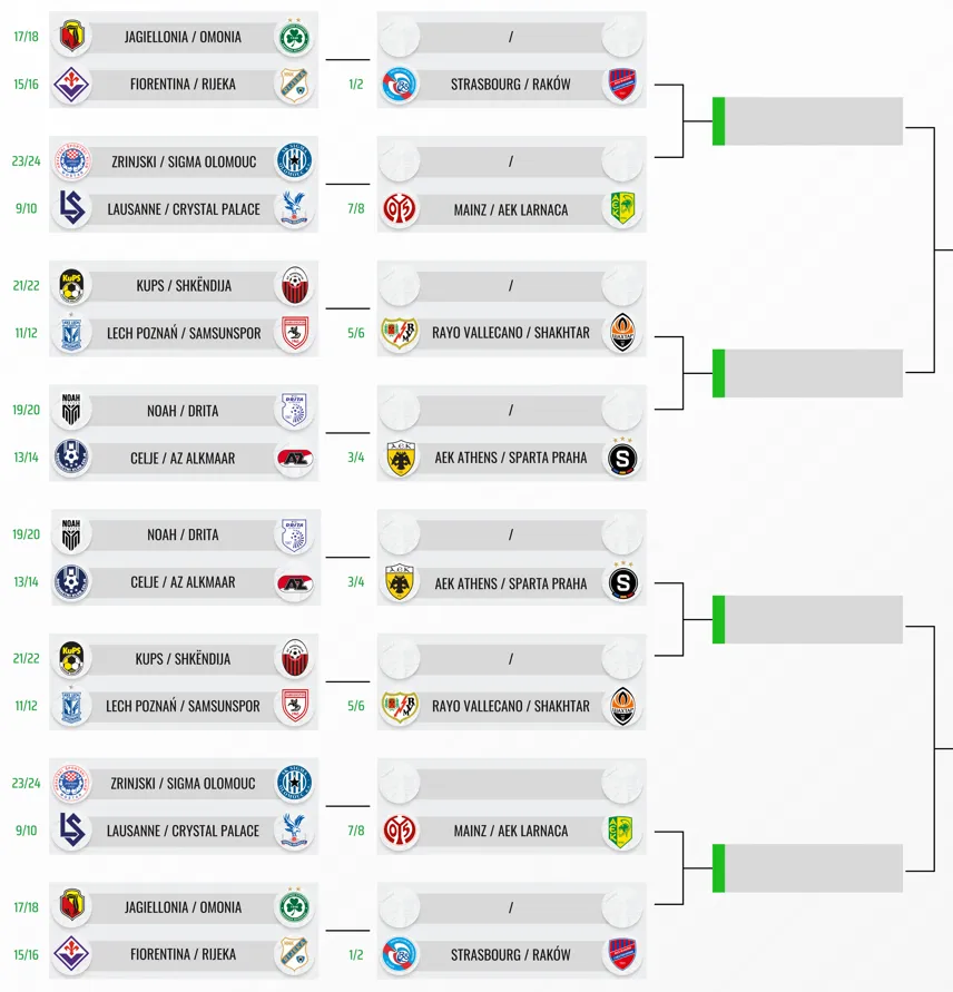 Završen je jesenji deo Lige konferencije i sada znamo svih 24 učesnika nokaut-faze trećeg međunarodnog takmičenja po kvalitetu. Velikih iznenađenja nije bilo, budući da su se svih pet klubova iz najjačih liga (Kristal Palas, Rajo Valjekano, Fjorentina, Majnc i Strazbur) plasirali u narednu rundu takmičenja. Ipak, Palas i Fjorentina su izvisili za direktan plasman u osminu finala, dok je to pošlo za rukom neočekivano AEK-u iz Larnake i poljskom Rakovu.