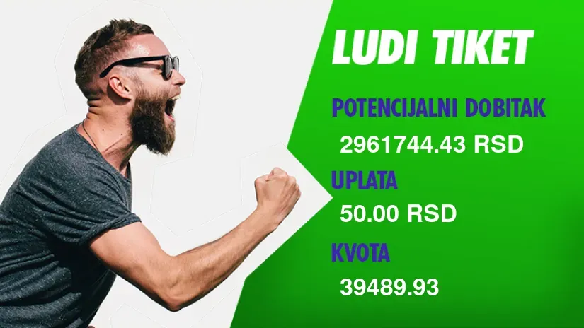 LUDI TIKET, četvrtak, 2.961.744 dinara: Hej, pogodi čovek 15 prelaza!