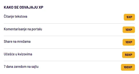 Ovom prilikom, pozivamo sve učesnike da pažljivo pročitaju pravila za osvajanje XP poena.