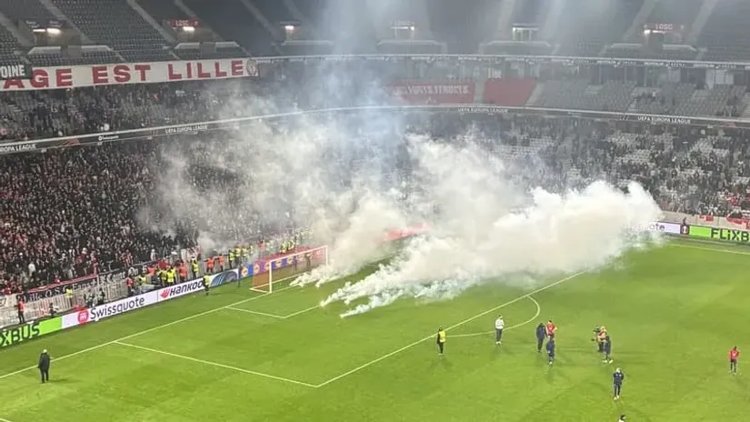 Pristalicama francuskog tima pao je mrak na oči. Prvo su salvama zvižduka „počastili“ igrače po završetku utakmice, a kada su prišli tribini na kojoj su najvatreniji navijači Lila – zasuti su bakljama.