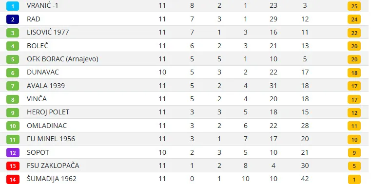 Do kraja jeseni ostala su još dva kola. Rad gostujue Omladincu u Rojkovcu i dočekuje Boleč, dok Vranić dočekuje trećeplasirani Lisović i gostuje Heroju u Jajincima.