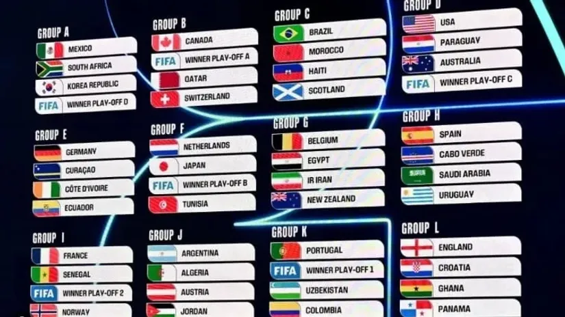 Ostalo je da se još u toku noći odigraju finalne utakmice interkontinentalnog baraža, pa da se kompletira spisak svih 48 učesnika Mundijala. Evo sastava grupa: