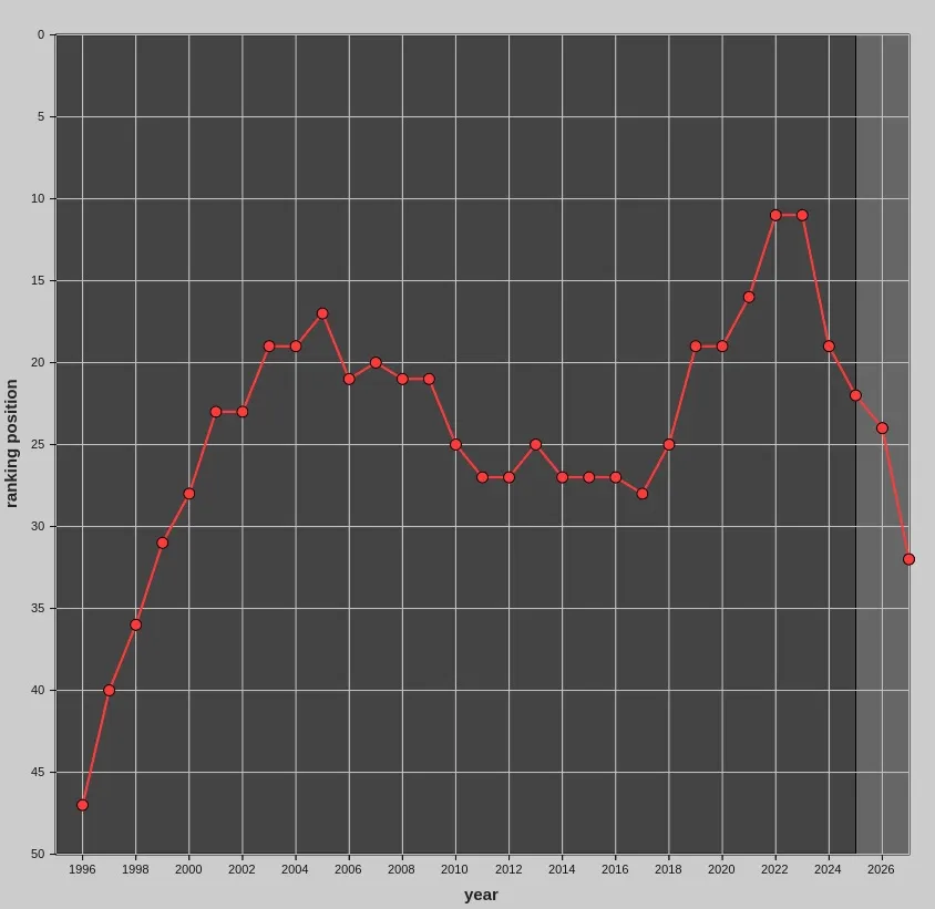 To bi predstavljalo najlošiji plasman još od devedesetih godina, kada su nam usled sankcija obrisali sve bodove. Kao samostalna Srbija, najlošiju poziciju beležili smo 2017, tada smo bili 28.