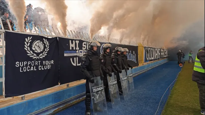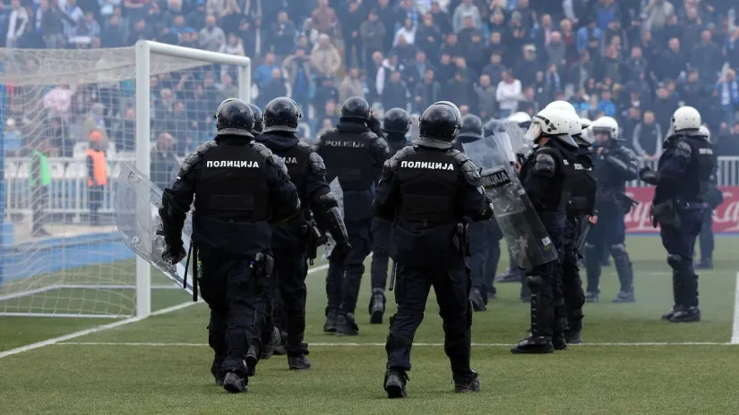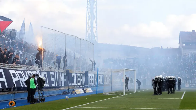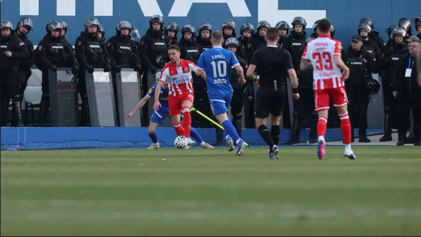 Sve što su treneri i igrači planirali da sprovedu u delo nakon prvog sudijskog zvižduka, moralo je da se odloži za desetak minuta zbog atmosfere 'bliskog istoka' na tribinama. Od pirotehnike se u jednom momentu ništa nije videlo, letele su baklje između domaćih i gostujućih ultrasa, sa tribina se orio nacionalističko-šovinistički folklor uvreda, pa su policijske snage odmah morale da se dupliraju pored aut-linije. Kada se situacija malo smirila i kada su se stvorili uslovi za igru, domaći navijači su poskočili čim je lopta krenula. Marinković ju je sa druge stative ubacio u mrežu, ali su brzo svi posedali jer je bio u očiglednom ofsajdu. Zvezdin odgovor je došao brzo i na sličan način pošto je Erakovć na Tiknizjanov centaršu gađao glavom malo preko gola.