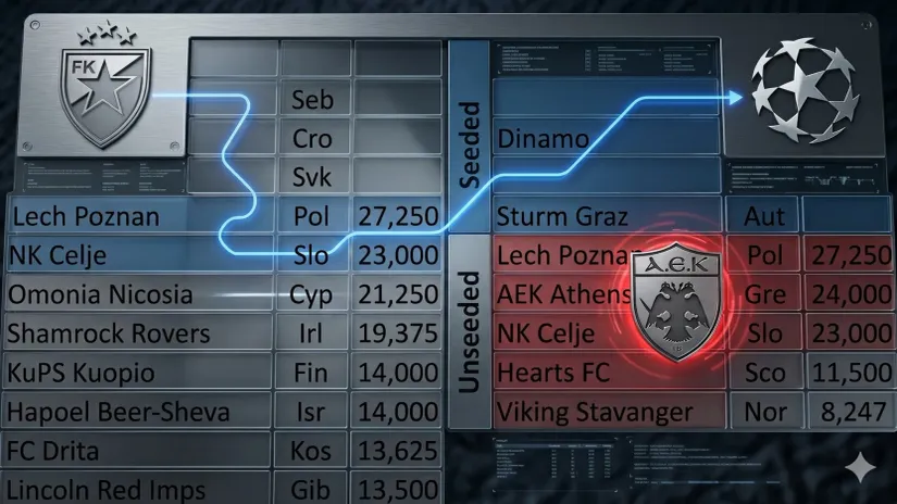 I tu je moguće da dođe do pomeranja, pošto je AEK drugi ispod crte na listi nepovlašćenih ekipa, pa ako neki favoriti stradaju pre četvrtog kola ili ako dođe do preokreta u finišu domaćih prvenstava do kraja sezone, moglo bi da se desi da Grci odu u društvo nosilaca. Ali, po stanju na današnji dan, klub iz Atine je na listi mogućih protivnika Crvene zvezde i bez dileme najatraktivniji među njima.