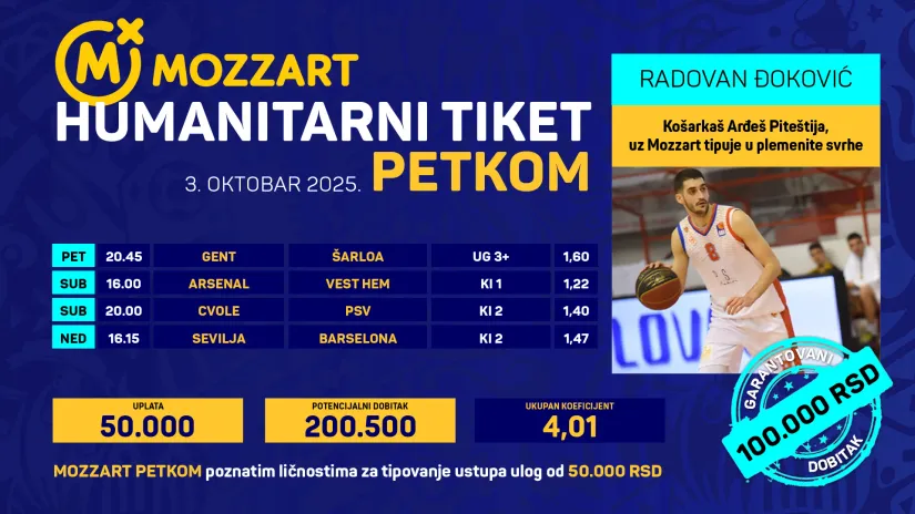 Humanitarni tiket u podne: Radovan Đoković zakucava četiri para, za dobitak težak 200.500 dinara