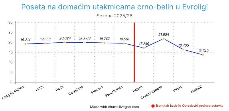 Kratak prekid pada posete se dogodio na večitom derbiju na kojoj je bilo čak 21.854 navijača što je ubedljivo najgledanija utakmica ove sezone u Evroligi svih klubova. Tada je izgledalo da bi Mirko Ocokoljić mogao da napravi čudo, da poveže redove i razbudi ekipu, ali i to je bilo kratkog daha.