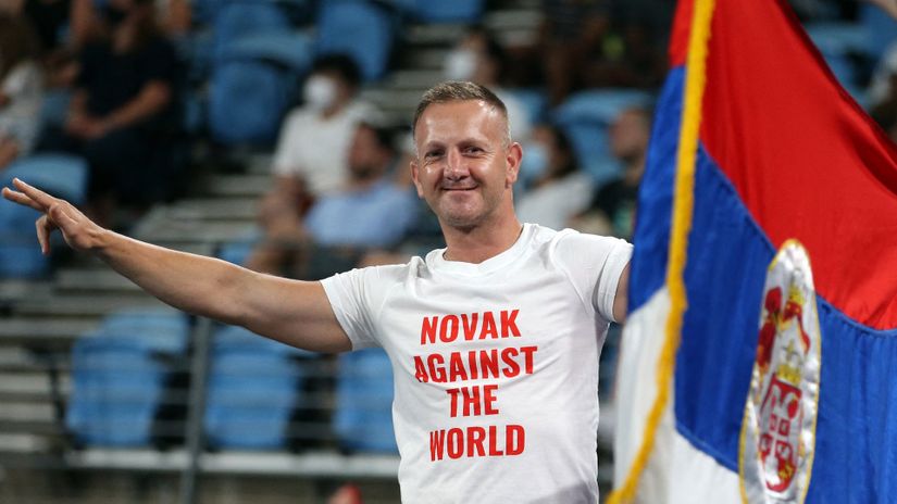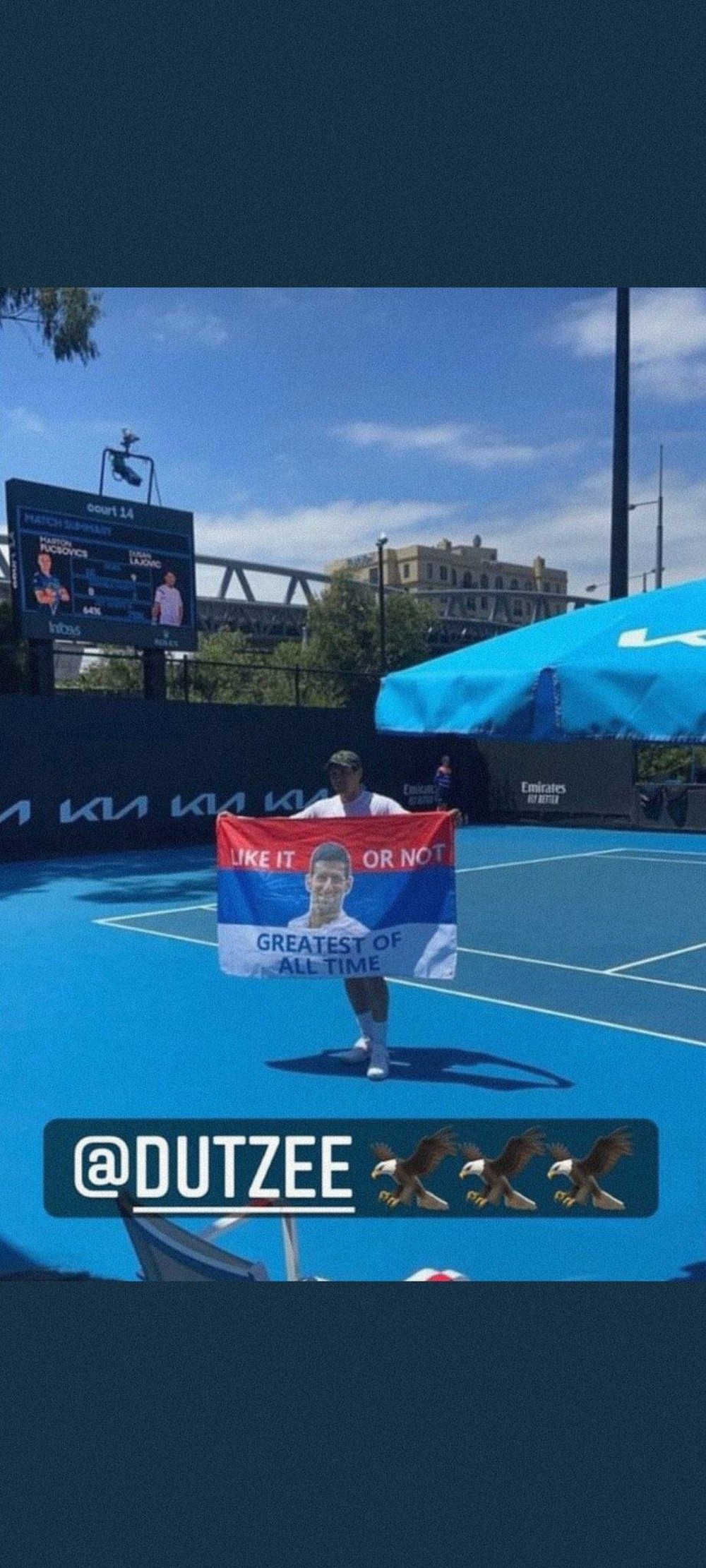 On je nakon pobede izašao na teren sa srpskom zastavom na kojoj je bio lik Novaka Đokovića, na kojem je bio i natpis: